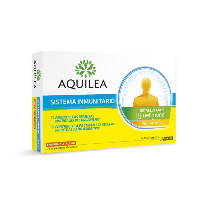 AQUILEA SISTEMA INMUNITARIO es un complemento ideal como refuerzo para las defensas de nuestro organismo, gracias a que está formulado con Wellmune, un beta-glucano natural clínicamente demostrado, Vitamina C y Vitamina D que: