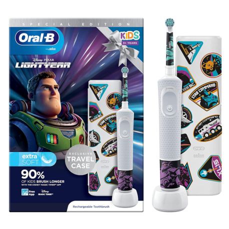 El cepillo eléctrico de Oral-B Kids BUZZLIGHTYEAR para niños mayores de 3 años combina la diversión de Spider-Man de Marvel con la limpieza suave y eficaz de un cepillo de dientes Oral-B recomendado por dentistas.