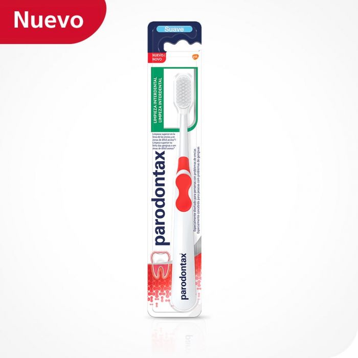 El cepillo de dientes PARODONTAX Cepillo Limpieza Interdental Suave tiene unos filamentos cónicos, suaves y extra suaves, para ayudarte a limpiar las zonas difíciles de alcanzar, como la línea de las encías.*