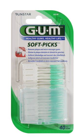 Un innovador cepillo interdental desechable elaborado completamente de caucho blando. GUM® Soft-Picks se desliza cómodamente entre los dientes para eliminar de forma segura la placa y las partículas de alimentos. Los filamentos suaves y flexibles estimulan y micromasajean suavemente las encías para promover la circulación sanguínea y mantener los tejidos de las encías firmes y saludables. GUM® Soft-Picks„¢ está clínicamente probado para ayudar a reducir la gingivitis. Fácil y cómodo de usar, GUM® Soft-Picks„¢ son una excelente alternativa aa la sedadental para los usuarios que no están conformes con el uso del hilo dental. Sin ningún tipo de alambre de metal, son ideales para pacientes con aparatos de ortodoncia o implantes. Apropiado para viajar y para su uso sobre la marcha.