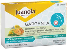 Juanola Garganta Propolis Complex es un complemento alimenticio con extractos seco de própolis, extracto seco de erísimo y otras plantas. Para aliviar la garganta y facilitar la respiración.