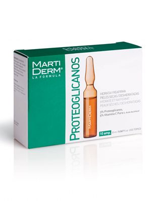 Martiderm® Proteoglicanos frena de forma eficaz el envejecimiento precoz de la piel del rostro, recuperando toda la luminosidad de tu piel. Al incorporar reparadores de proteoglicanos y vitamina C pura en su composición, la gama de Martiderm® se convierte en una de las más eficaces para tratar la flacidez, la sequedad cutánea y las arrugas de la cara y del escote. Recupera paulatinamente la tenacidad del rostro.