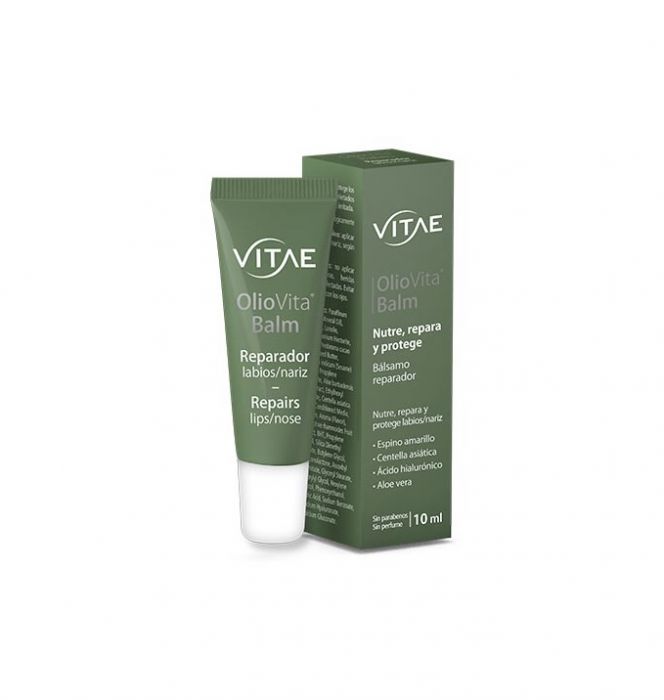 Olivita Bálsamo reparador con extracto de espino amarillo (Hippophae rhamnoides), extracto de centella asíatica (Centella asiatica), ácido hialurónico y aloe vera (Aloe vera).