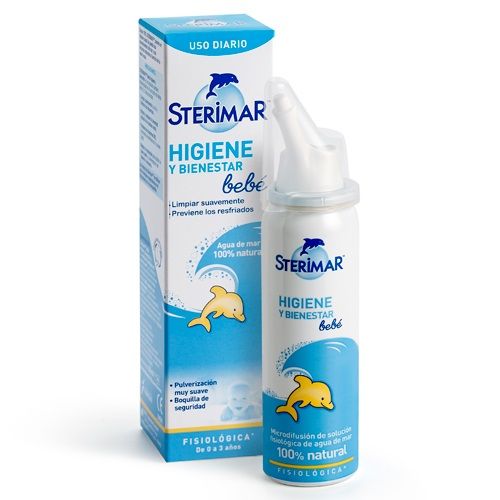 STERIMAR Bebé higiene y bienestar es un producto sanitario recomendado en el uso diario de bebés entre 0 y 3 años de edad: Limpia suavemente la nariz y elimina las impurezas (polvo, partículas finas de contaminación, moco, alérgenos…), Hidrata y restaura la humedad natural de la mucosa nasal (calefacción, aire acondicionado), Previene los trastornos ORL (resfriados, rinitis, sinusitis, infecciones del oído…), reforzando las defensas de la mucosa nasal, Mejora la respiración para facilitar un buen sueño y la alimentación con biberón o lactancia.