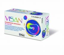 Complemento de omega 3 (DHA), luteína/zeaxantina y licopeno, vitaminas, oligoelementos, glutatión, coenzima Q10 VISAN ha sido ideado para complementar el aporte dietético de todos los nutrientes incluidos en su composición. Para asegurar el aporte mínimo diario de aquellos cuyos niveles puedan hallarse reducidos, por efecto de la edad o de las dietas poco equilibradas, y que son necesarios para un correcto funcionalismo visual. La inclusión de los extractos vegetales buscan favorecerlo. El aporte suficiente de estos nutrientes y sustancias a través de la dieta, complementándola cuando sea necesario, favorece el correcto funcionamiento de la retina y la salud ocular